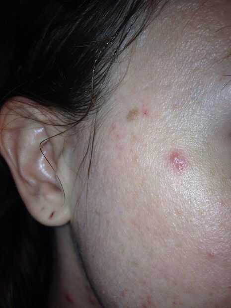 Briyana lava la cara con un limpiador de gran. Como se puede ver Briyana tiene unos granos y tienen enrojecimiento.
