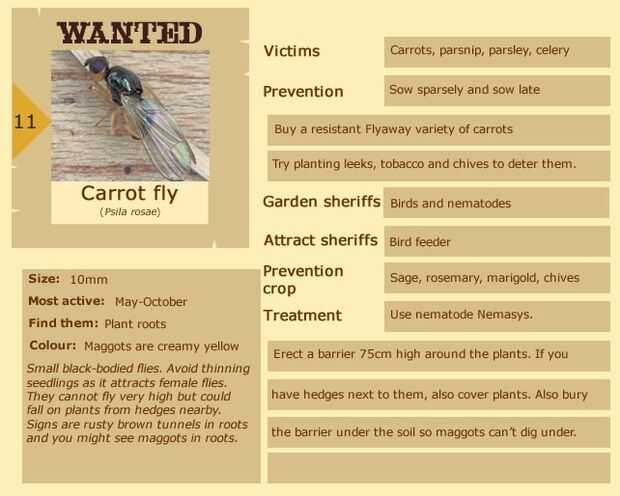 Mosca de la zanahoria - me normalmente no consigue molestado por las moscas como un montón de hierbas, que odian de la planta. Si consigo alguna en mis zanahorias tiendo a bajar estos y cubrir las plántulas jóvenes con tela metálica para evitar que las moscas depositando huevos en ellos. Que también sembré mis zanahorias tarde para tratar de evitar la temporada cuando las moscas son gallinas y apareamiento. Esto las costuras para han trabajado hasta ahora.