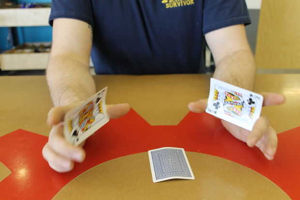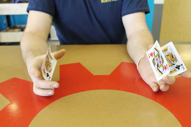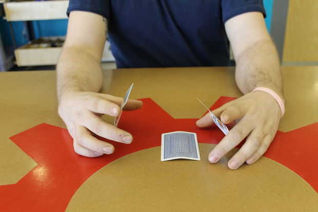 engañar a la gente y que luego ves tonto cada vezPaso 1: equipo de Haz 2 tarjetas idénticas (si es posible) y una tarjeta diferentePaso 2: doblar las tarjetas Doblar ligeramente a lo largo de las líneas negras (no mucho el blanco líneas como lo he he