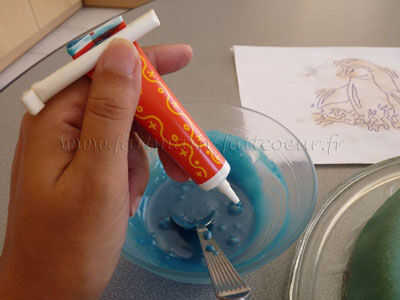 Llene su pluma glaseado con chocolate derretido y dibujar sobre las líneas punteadas.