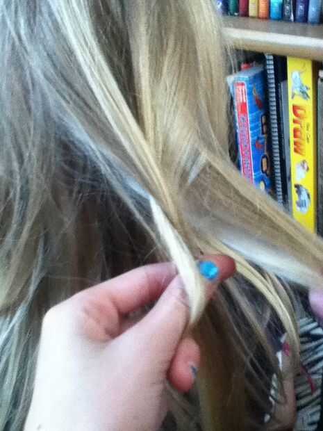 lindo el peinado de cada día; rápido y fácil (perfecto para la escuela)Paso 1: paso 1 Parte de pelo para el lado. Lazo pelo extra en una cola de caballo.Paso 2: Step2 Tomar pelo y francés la trenza sobre hasta la mitadPaso 3: paso 3 Mitad camino, seg