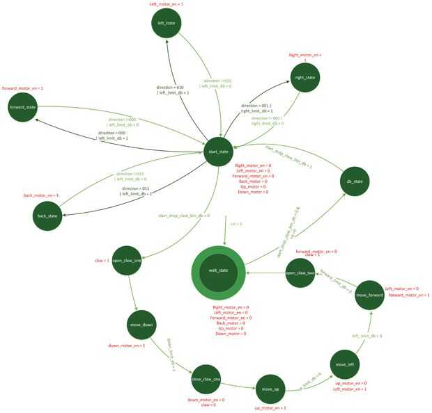 En la imagen en este paso se puede ver la máquina de estado para la máquina de la garra.