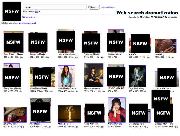 Todo lo que necesitas hacer ahora es volver a la Página principal de búsqueda de imágenes y escribe en la barra de búsqueda el nombre de cualquier mujer en el hemisferio occidental y presiona enter. Esto se carga una gran cantidad de imágenes pornográficas para compartir. Por ejemplo, tratar de escribir los nombres de algunos de sus amigos como "Lisa", "Ana" o incluso "Marie" (sobre todo Marie!). ¿Recordar aquel momento tuviste una camarera llamada "Simone"? Trate de escribir en! ¡ Wow! Mira lo fácil que es encontrar pornografía.