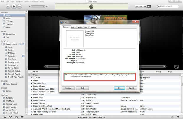 Sabiendo el camino original de la falta de un archivo de track puede ayudar a encontrar la canción real, especialmente si mueve la carpeta de media iTunes a un disco duro externo y se olvidó de la ruta de la carpeta donde se encuentran tus canciones.