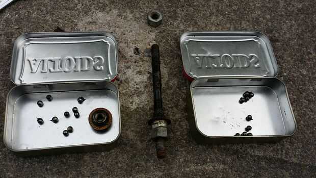 Con cuidado retire los cojinetes uno a la vez. Asegúrese de contar cuántos cojinetes salen del cubo. 10 a 11 es generalmente estándar.