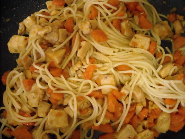 ADVERTENCIA: Paso de los espaguetis en el fregadero, el agua puede salpicar y producir una pequeña quemadura que podría hacerle caer los fideos en el fregadero. Nadie quiere que eso suceda.