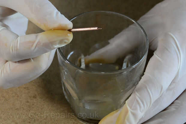 Enjuague sus uñas y cobre después de su uso para evitar decoloración. También no olvides verter la solución a y limpiar el cristal antes de reutilizarlos.