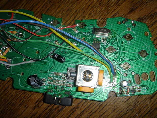 Punto siguiente hasta fue el cable verde del cable del USB, llamado D +. Para nosotros, necesitamos el cable X360_2. Corte a la longitud, estaño y soldadura en el agujero a través del cojín.