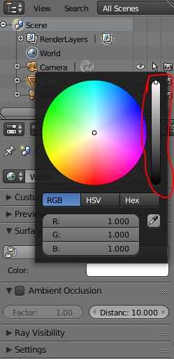 Para hacer que el fondo tiene un color blanco, haga clic en la ficha del mundo es hacia la izquierda de la pestaña de materiales y tiene la tierra como su icono (Foto 1). Después de hacer clic en esa pestaña, aparecerá un nuevo menú. En la pestaña superficial de ese nuevo menú, habrá una opción de Color. Haga clic en esa barra (el color por defecto debería estar gris) y arrastre el control deslizante a la derecha hacia la parte superior. Esto hará que el fondo blanco.
