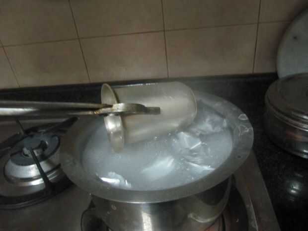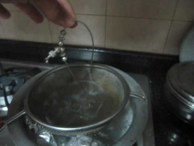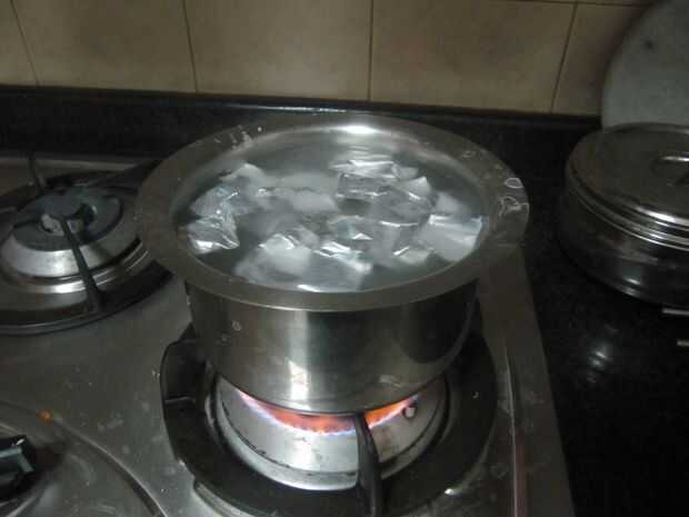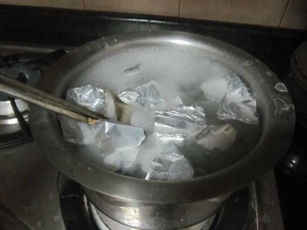 1. una vez que el agua esté hirviendo, debe ver mucho de la formación de espuma. Cuando esto sucede usted está listo para mojar los cubiertos