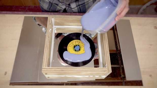Vierta lo suficiente para cubrir el expediente. También querrá tapar el agujero del huso de su expediente. Estoy usando un inserto de plástico adaptador de 45 RPM.