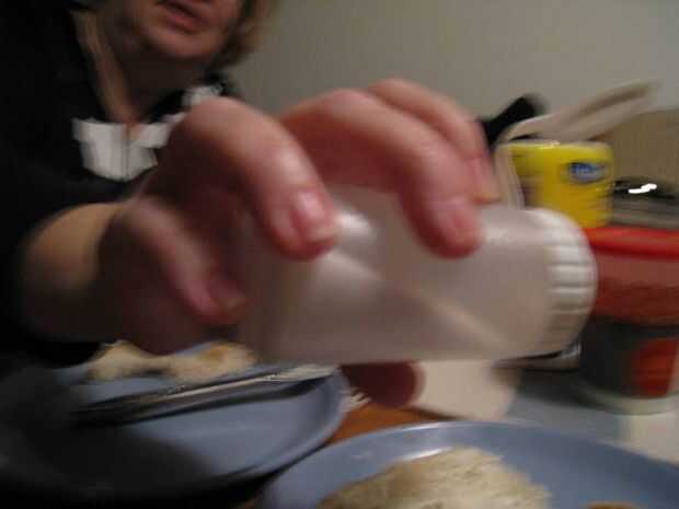 Tiene tu abuela que ponga sal. Es mejor si ella lo hace porque sal sale rápido y demasiado mucho es repulsivo y no se puede hacer fuera muy bueno. (BTW - Chef Ethan tomó esta fotografía por sí mismo)