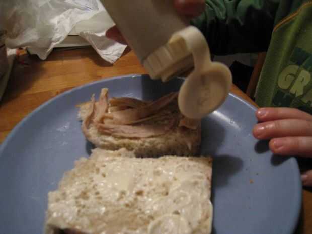 Cómo un niño de 4 años hace un sándwich de pollo (11 / 14 paso)