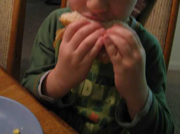 Cómo un niño de 4 años hace un sándwich de pollo (14 / 14 paso)