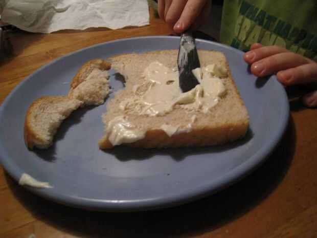 Cómo un niño de 4 años hace un sándwich de pollo (3 / 14 paso)