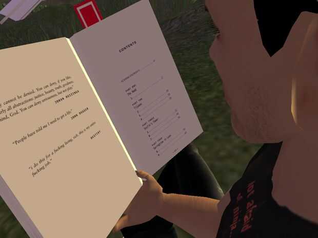 ¿Hacer? Todos los derechos: ahora eres un "residente" de Second Life. ¿Qué sigue? Dos opciones. Uno: usted puede dedicar las próximas 100 horas más o menos a aprender bastante del lenguaje de scripting objeto una propiedad de Second Life para crear una versión virtual buggy, semi legible de tu libro. O dos: usted puede pagar a codificador de libro Second Life as Falk Bergmann una cantidad muy razonable de Lindens para convertir tu libro en un trabajo hermoso, completamente funcional del genio de objeto de secuencias de comandos.