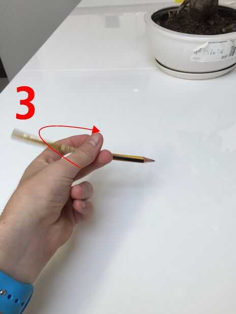 - Ahora el middlefinger y el índice se mueven hacia abajo un poco. Si se mantiene el lápiz en una buena posición en el inicio, hacer girar como un encanto!