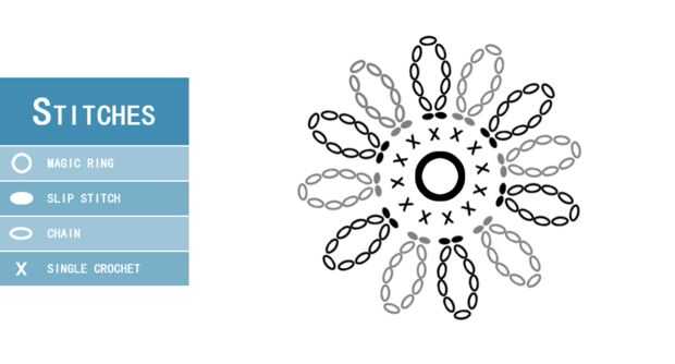 Para hacer esta flor, en un anillo mágico le debe trabajar 12 single crochet.