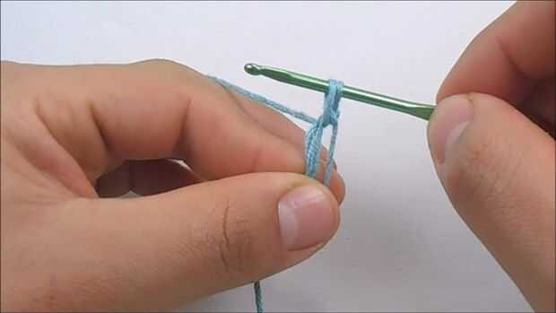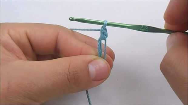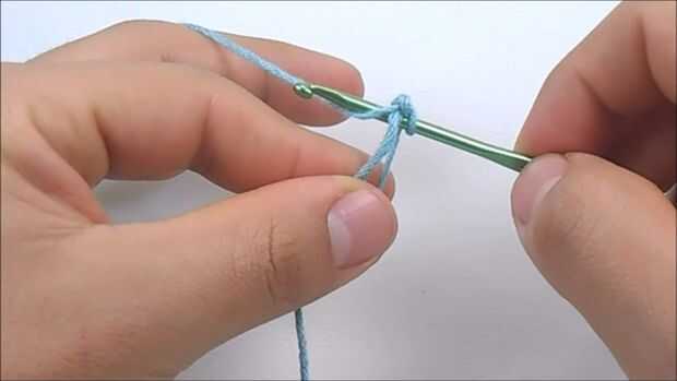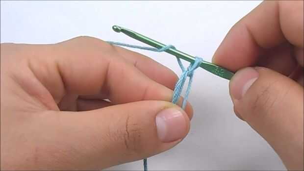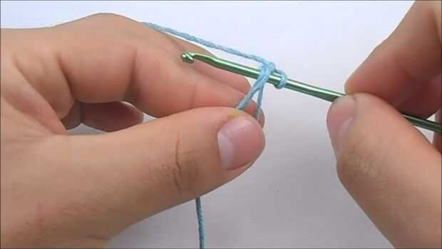 Para hacer el primer punto bajo, tenemos que pasar el gancho a través del anillo, hilado encima (que es para poner el hilo sobre el gancho), ahora tire del gancho y deben de tener dos lazos en él, hilado encima otra vez y tire del gancho a través de los dos lazos.