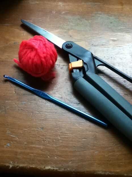 .yarn .crochet gancho. Tijeras .pom poms o diamantes de imitación (opcionales)