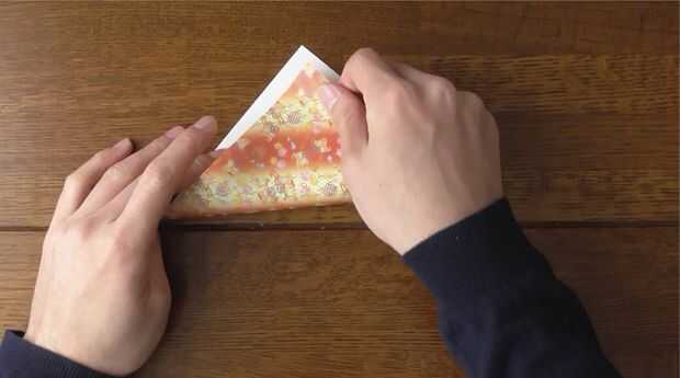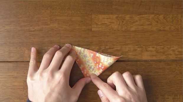 Blanco hacia arriba, doblar por la mitad diagonalmente.