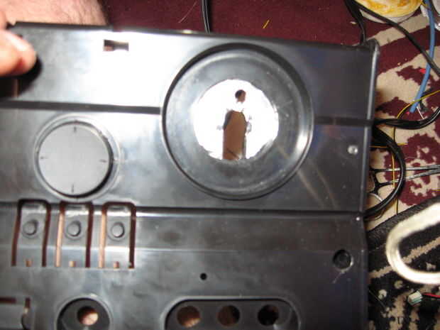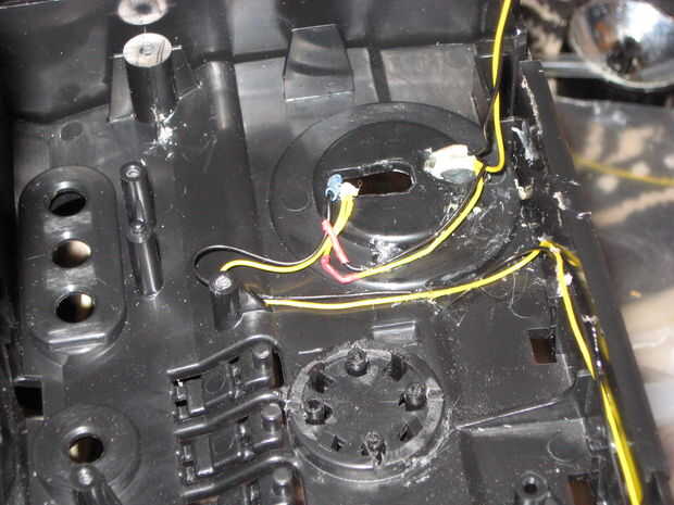 Tuve que perforar en su totalidad en plástico detrás de la cara del metal por lo que podría añadir otro led. Luego asegura el alambre con pegamento caliente y armar todo nuevamente.