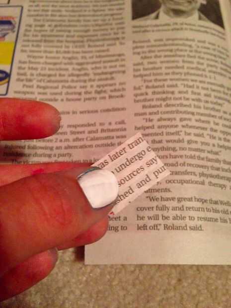 Asegúrese de que no es demasiado grande o demasiado pequeño, si su demasiado grande es difícil trabajar y el periódico podrían incluso conseguir la piel. Si su demasiado pequeño y no cubre la uña entera.