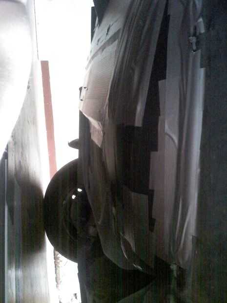 Coloque la parte más plana de la plástica en el coche, luego doblar el (muy colgantes y fibrosos) resto a donde debe estar. Allí la cinta, o de lo contrario adjuntarlo (tuve suerte de poder meter debajo de una de las bridas de montaje de la parte principal). Habrá algunos que no caben más (tal es la naturaleza de curvas compuestas), así que les cortar y sellar los huecos con cinta.
