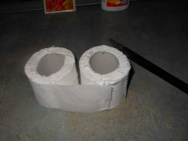 Tomé el cuchillo y cortar lo que quedaba del rollo de papel higiénico por la mitad.  Sólo necesitaba la mitad del ancho del rollo, y no quería usar tijeras y cortar el centro del papel higiénico para siempre!