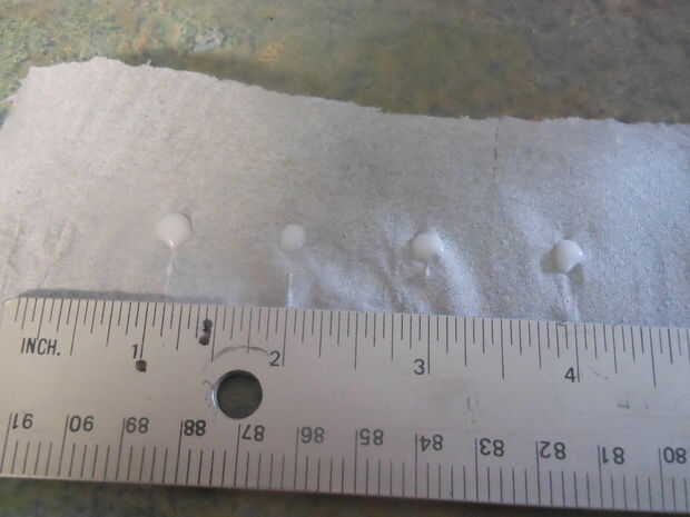 que rodé a 36 pulgadas (+-) del papel higiénico. Pone la regla a lo largo del papel y poner un poco de pegamento cada 1 pulgada. Tratar de hacer el lenguado más pequeña posible. Menos pegue mejor, porque dará a conocer la semilla más fácil y no pegue la parte inferior del papel al contador tan fácilmente.