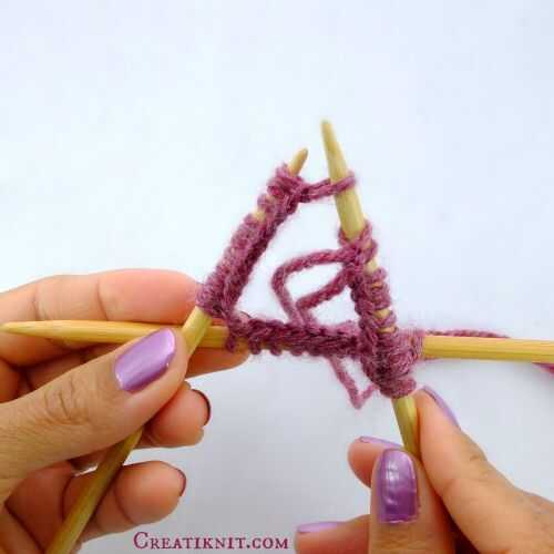 Paso 6: Levante la puntada y de la aguja izquierda y en la aguja derecha.