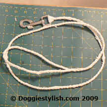 La correa que le estoy mostrando es conveniente para un pequeño a mediano tamaño perro sólo!!!!!! No vaya a pie su Bullmastiff de 150 libras con ella porque romperá cuando el perro las cepas con la correa. Si usted desea hacer una correa de perro más fuerte, duplicar los hilos del trenzado o utilizar un plástico más grueso.