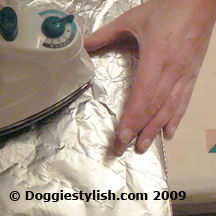 Ahora a los extremos de la trenza posterior a la correa del perro. Este paso evitará que las hebras que extendidos. Dos de los hilos cortados estarán a ambos lados de la trenza. Una trenza de la cara, cerca de la manga de papel de estaño y frote suavemente la punta de la plancha sobre él durante 30 segundos de manera. Repita con el otro lado de la trenza donde se recortan las cuerdas. Para hacer el lazo de mango muy bueno, toma un encendedor y coloque la llama alrededor de una pulgada lejos de los extremos cortados y les derrite muy bien. Una vez el plástico líquido, la voy a liar la pieza fundida para hacer la zona lisa.