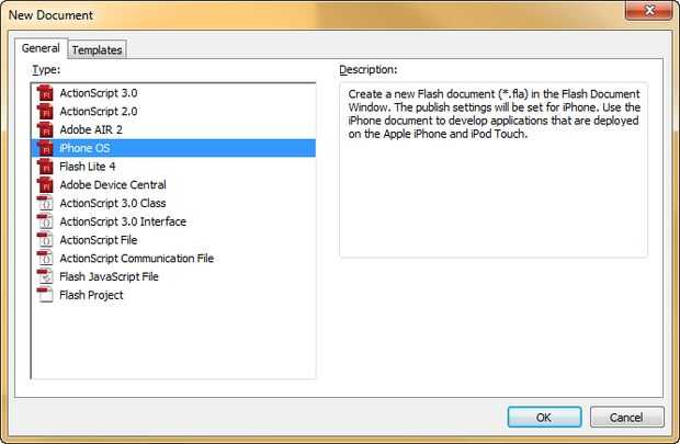 En el cuadro de diálogo nuevo documento, seleccione iPhone OS y haga clic en Aceptar.