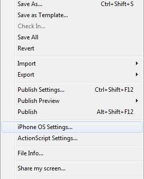 Ahora en el menú Archivo, ir a iPhone OS ajustes...