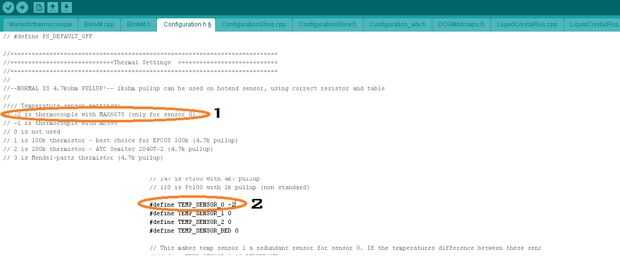 Paso 2: Configuración de firmware del Marlin con termopar.