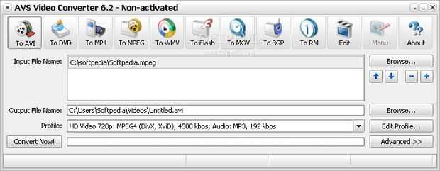 Con AVS, abrir para arriba, haga clic en "examinar" al lado del bar de nombre de archivo de entrada y seleccionar el archivo. En la barra superior, seleccionar el tipo de archivo de salida. Te recomiendo. AVI o MP4. Haga clic en "start". Esto llevará a una hora. Sólo hay que ir ver algunos Mythbusters mientras esperas. =)