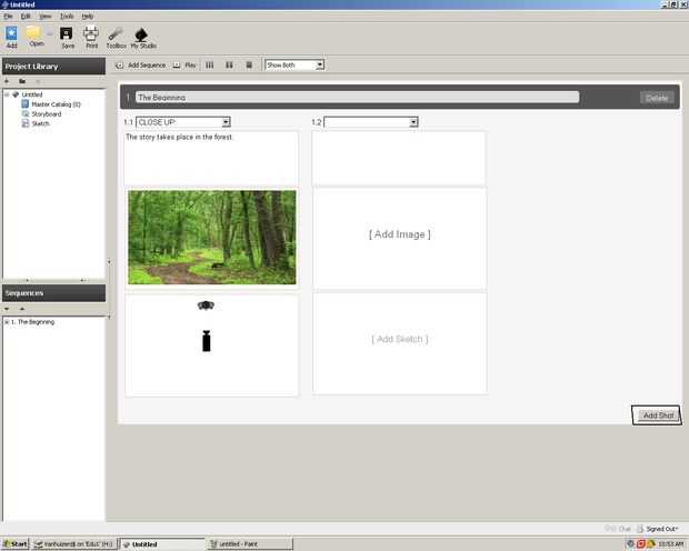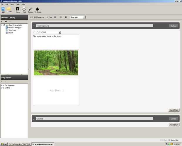 Añadir fotos desde el hardrive para poner en la escena o la escena de acción. Haga clic en Añadir dibujo para poner en la selección de cámara, los miembros del elenco y luces. Lo salida a continuación, haga clic en guardar para poner el bosquejo en el guión gráfico. Puede agregar tantos tiros al storyboard como desee haciendo clic en el icono Agregar un disparo. Para ir a la segunda escena haga clic en agregar secuencia cerca del extremo superior y repetir la misma secuencia. Este es un simple instructivo para utilizar el programa Celtx.