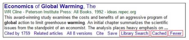 Paso 1: Haga clic en el enlace "Citado por 1755". Esto le llevará a una página con todos los artículos que han citado también la principal fuente de "Economía de la Calentamiento Global"