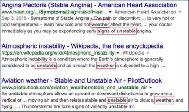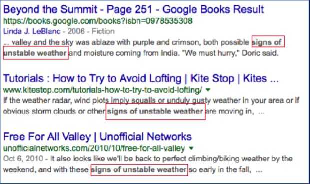 Paso 1: Buscar "signos del tiempo inestable" con las comillas incluidas. Podrás ver el motor de búsqueda busca la frase exacta con ninguna rotura entre las palabras.