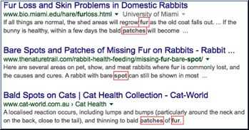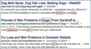 Paso 1: Buscar "manchas en la piel – perros" sin las comillas. Esto le dará resultados para cualquier animal posible excepción de los perros.