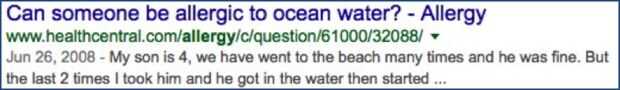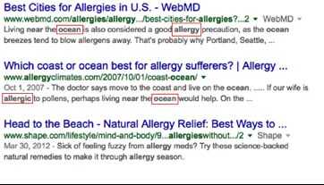 Paso 1: Buscar "alergias cerca océano" sin comillas. Los resultados incluirán las palabras "alergias" y "océano" dentro de la gama de 16 palabras.