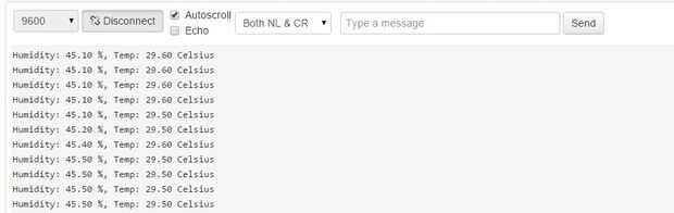 Trate de descargar el plugin codebender y haciendo clic en el botón de "Ejecutar en Arduino" para tu placa Arduino con este sketch del programa. A continuación también encontrará monitor serial codebender, pulse conectar botón para empezar a recibir datos del sensor.