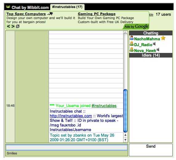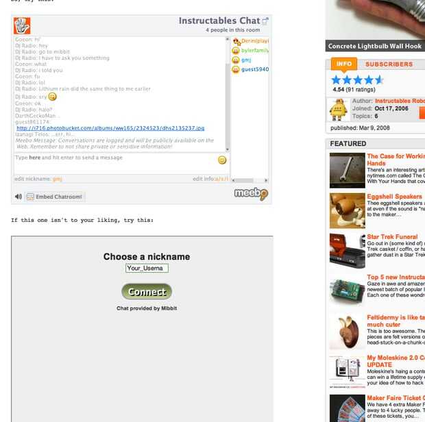 Se puede llegar a mibbit por el tema de la sala de chat de Instructables