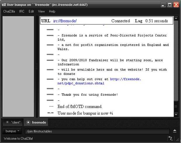 Una vez instalado Asegúrese de completar el 'nick de IRC identificar con Instructables paso.