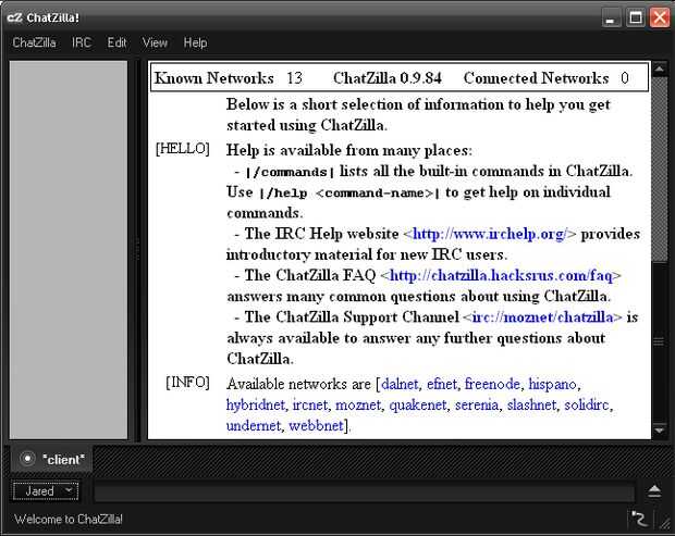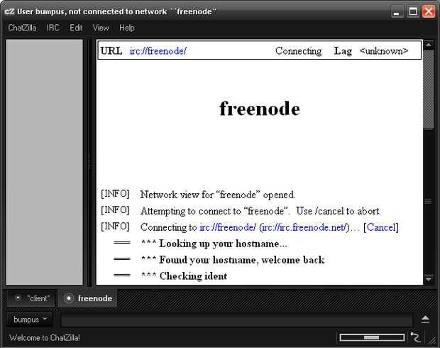 Otro Consejo: entrar en "chrome://chatzilla/content/chatzilla.xul" en la barra de direcciones de Firefox te permitirá ejecutar Chatzilla fuera una pestaña, en lugar de una ventana independiente.