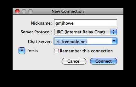 Para el servidor de chat, elija 'irc.freenode.net'