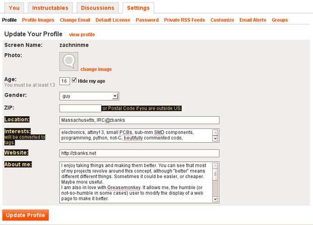 Con el fin de indicar el nick (apodo) que desea asociar con tu cuenta de instructables, añadir "IRC ayour_nick"a sus ubicaciones en el perfil de instructables, pero reemplace your_nick con el apodo que utilizas en el IRC. Si ya tenía un lugar, separado con una coma como "Massachusetts, IRC