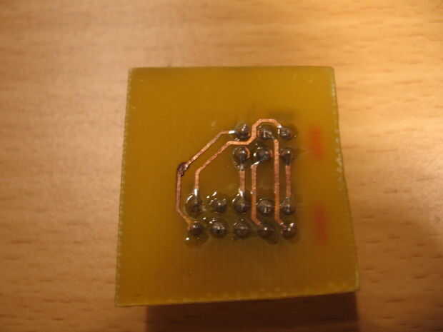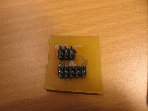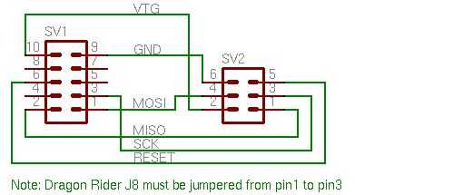 He creado mi propio tablero de adaptador y jumper de 3 pins para abastecer la cabecera del isp de 6 pines. Qué se encuentra el jinete hasta el programa y un microcontrolador de 8 pines. Usando un enchufe de 3 pines soy puentear J8 para conectar los pines 1 y 3. Esto dirige la señal de reloj al conector del PortB. Luego ejecutar un cable de puente desde la cabecera de PortB a mi tablero de adaptador y listo!