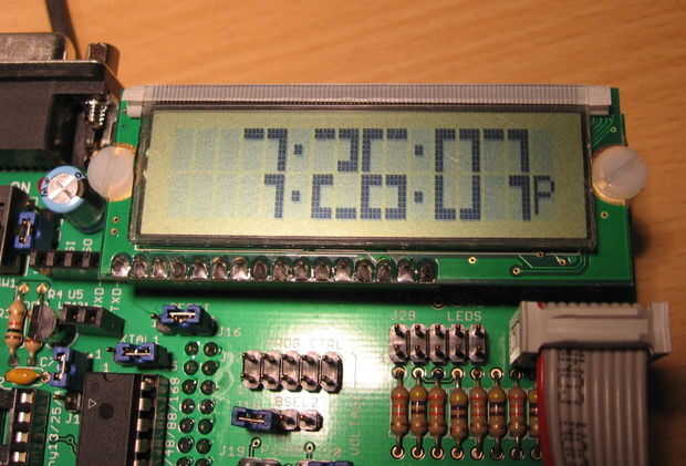 En el cuadro en la parte inferior se puede ver la hora 19:26:07 aparece en gran número en la pantalla LCD. Cada número está utilizando una cuadrícula de 2 x 2 de la pantalla de caracteres para mostrar el gran número. Ello utiliza una fuente escrita originalmente por Xtinus para el proyecto XBMC.